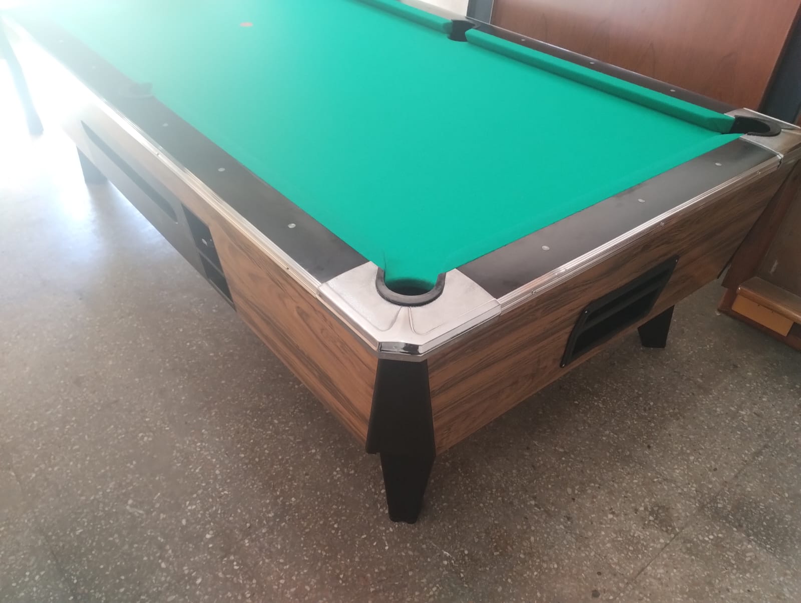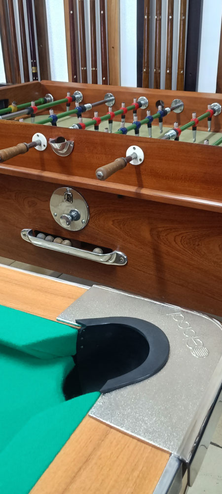 En las mesas de Pool: recambio de paño, bandas, rieles, reajuste de canaletas internas, fichero etc.