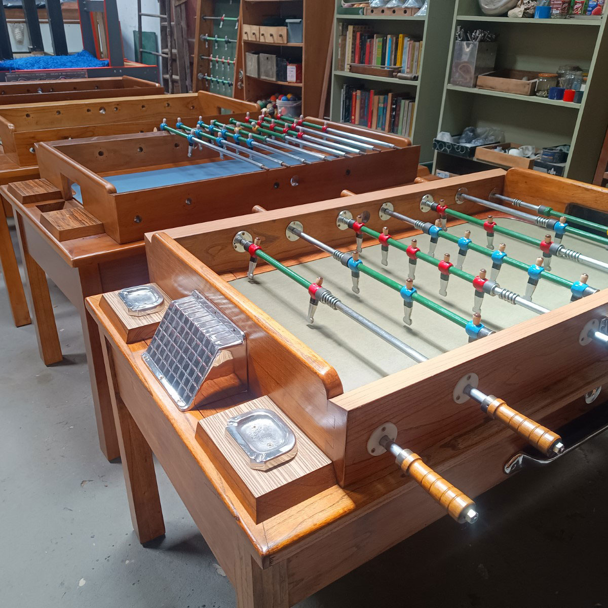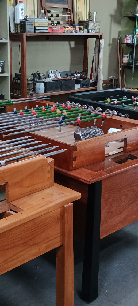 Realizamos el trabajo de restauración reacondicionamiento de juegos en des uso, damos presupuesto sin cargo, con el traslado y la instalación o trayendo los juegos al taller desde 1997 en en rubro de restauración de mesas de pool y metegoles comerciales.
